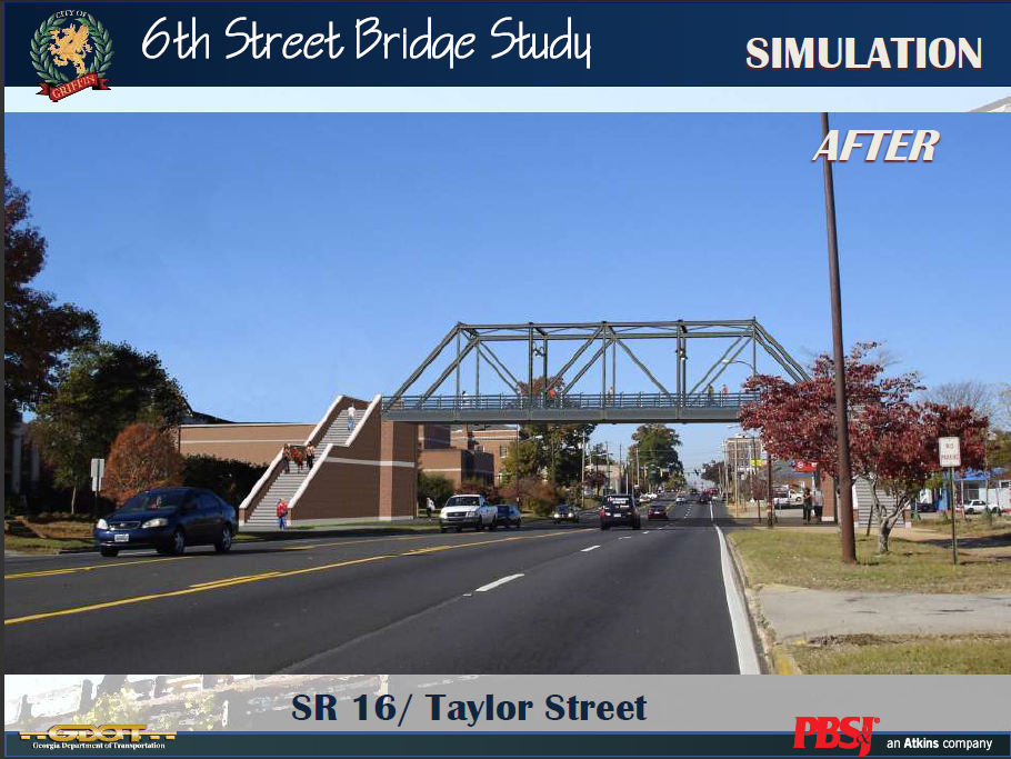 The consulting and engineering firm of PBS&J and Atkins Company will be presenting seven potential sites to reuse the twin, Steel Warren truss bridges. In September of 2011 the 6th Street Bridge is being replaced by Georgia Department of Transportation with a new bridge. There has been much community discussion on what will happen to the old bridge. On February 8, 2011 at 6 p.m. the consultant will present the City Commission with their study on potential sites to utilize the old structure. The presentation will take Place at One Griffin Center.
