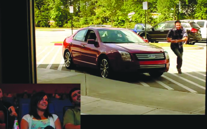 A camera recorded Ginny's reaction to the movie trailer proposal, in which Matt is racing to the movie theatre to propose.