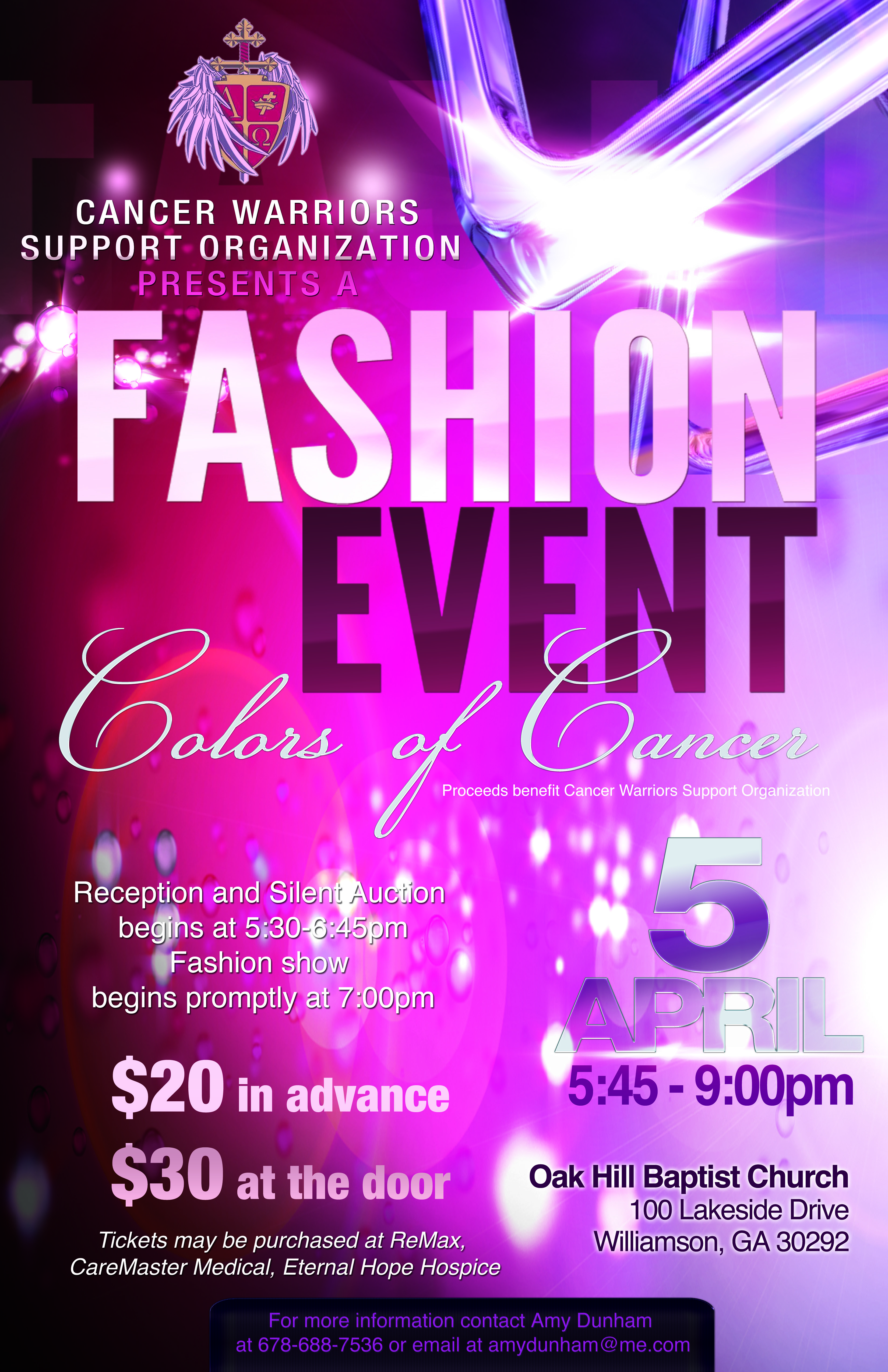 The Fashion Show is our largest fundraiser of the year, we are asking the community to come out and support the fight against Cancer April 5th. Tickets are available at Kenny’s Collision, Eternal Hope Hospice, Economy Rental, CareMaster Medical and All Together. If you need additional information, please contact Amy Dunham 404-931-1799 or amydunham@me.com.