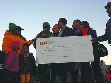 At Wednesday’s celebration of the Bears’ championship victory, McDonalds presented the Griffin High Touch Down Club with a $5,000 check, which will in turn be given to Parks and his family, whose home was burglarized during the game. “It was donated to Mr. Parks to his family. They donated it to us to give to him. We’ll just give him the check,” said Doug White, Griffin Football Booster Club president.