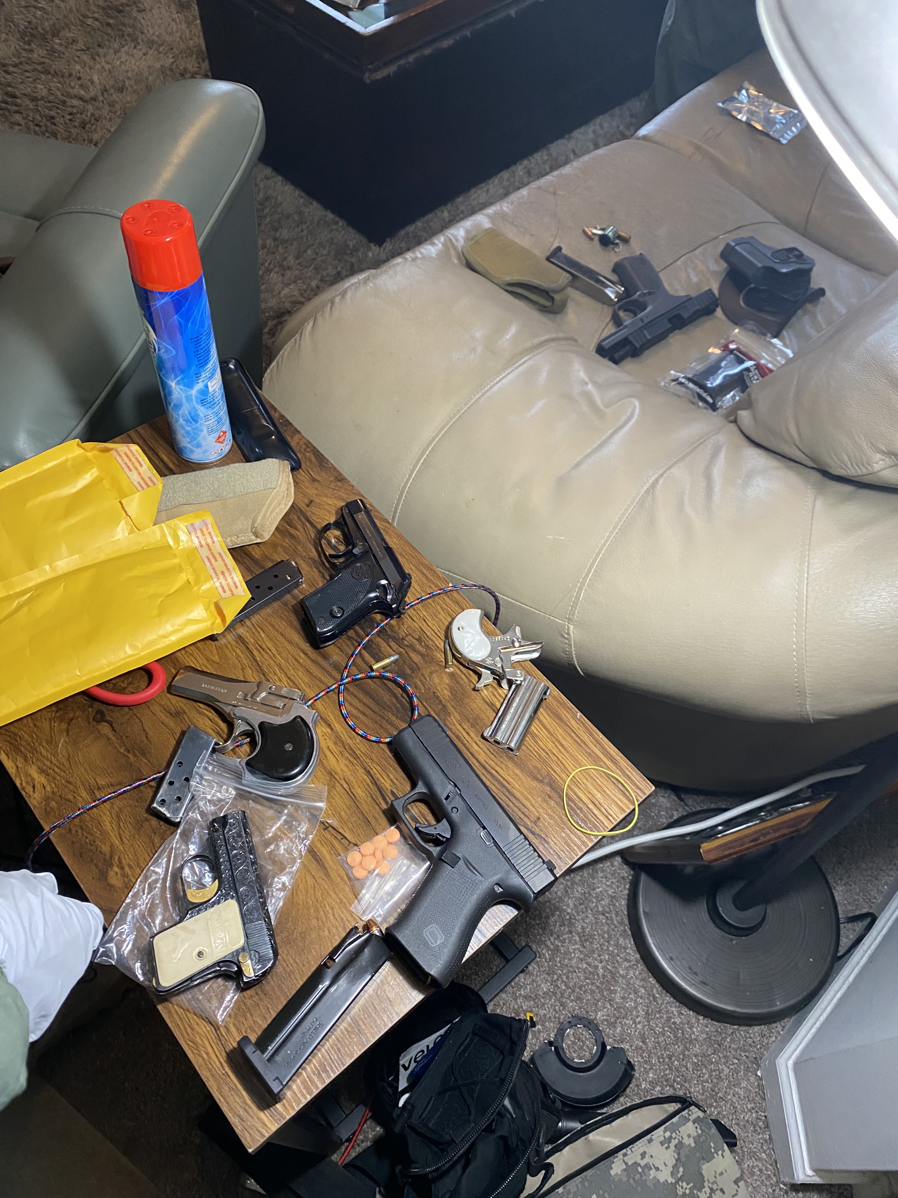 “A total of 17 people have arrested, and 4 more are still being sought. A total of 10.9 pounds of methamphetamine was seized along with 21 firearms, approximately 250 prescription pills of various types, 2 pounds of marijuana, 20 ounces of GHB, and small amounts of THC products that are outside of the parameters of legality. Four vehicles were also seized along with $17,096.17 in currency (sic all),” said Spalding County Sheriff Darrell Dix. “When Special Operations Agents began digging, they found that this organization was tied to a source in the metro Atlanta area who was responsible for pound quantities of methamphetamine coming into Griffin and Spalding County and surrounding counties on a weekly basis. Because this target lived and operated outside of Spalding County, we reached out to the GBI West Metro Regional Drug Office for assistance. As the investigation grew, we reached out to other agencies for assistance with surveillance, and operations.”