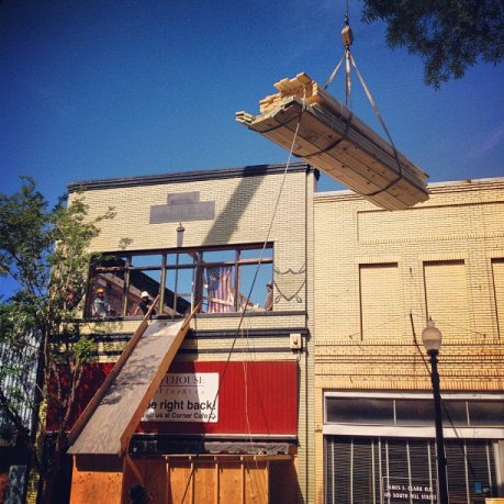 A portion of Hill Street was temporarily shut down today as crews hoisted lumber necessary to build Safehouse Coffee and Tea’s new roof. Jacob Orr, Safehouse manager, has already sketched a new layout for the much-anticipated return to the old building at 109 S. Hill Street, but for now, he’s keeping them under wraps. “We […]